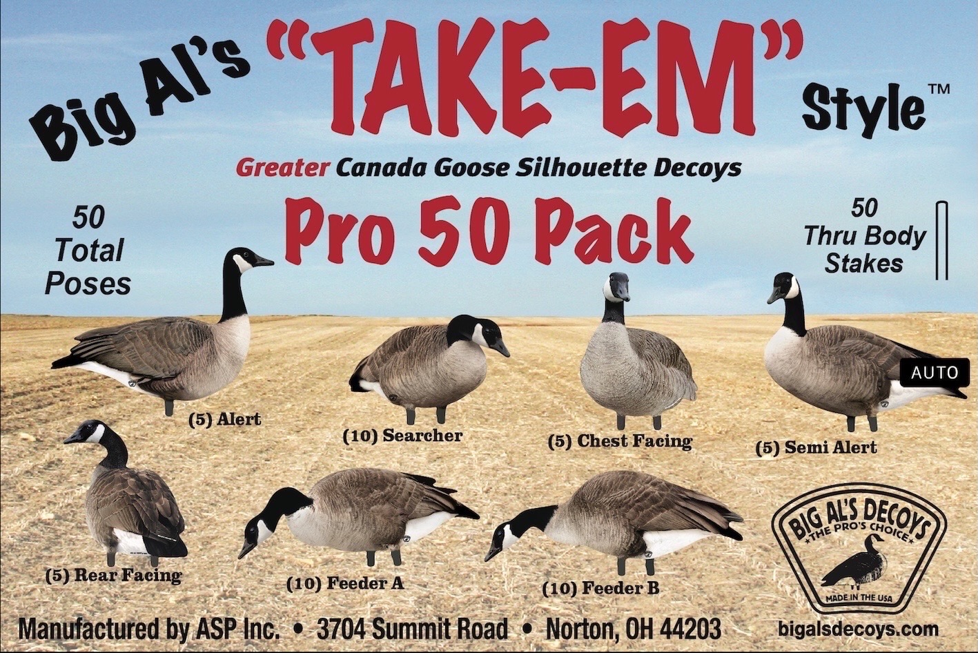 Welcome to Flight Control Decoys and More! A proud distributor of the one and only Big Al's Take Em Style Silhouette Decoys. We are run by hunters, for hunters distributing products that we truly believe in and primarily use in the field. Take a look around our site and let us know how we can help you put holes in the migration. Contact us anytime, and be sure to visit out Facebook page at Flight Control Decoys and More for migration updates, pro tips, upcoming events, hunting pictures and a whole lot more.