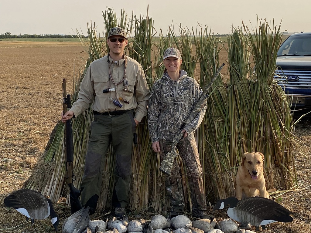 Natasha and Derek have been hunting waterfowl together for the past 13 years. They've been improving techniques since then and focus on compact but effective methods for decoying geese and ducks. Derek also has a YouTube channel with several good videos ranging from shooting lanes in the field to shotgun and decoy reviews. Check them out as hissinggoose. They have recently gotten into upland hunting as well and are always sure to have their hunting dog, Gander, along with them. They love being outside, whether it's fishing, gardening, hiking, or hunting. Their goal when hunting is to have a great time with friends while harvesting wild game.